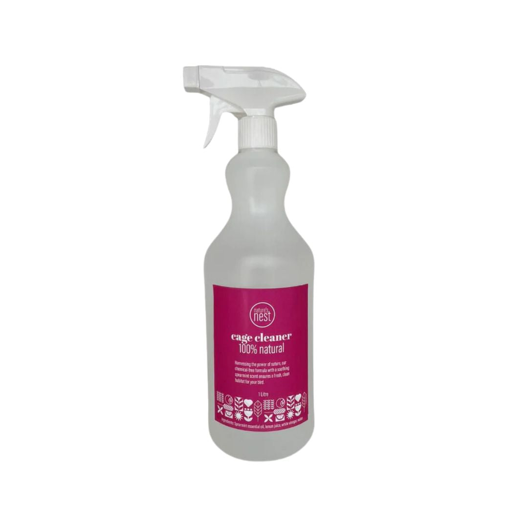 Nature's Nest Natural Cage Cleaner is your trusted solution for keeping your pet bird's habitat clean and fresh. Formulated with natural ingredients including white vinegar, lemon juice, and peppermint essential oil, our cleaner effectively removes dirt, grime, and bacteria without harsh chemicals. Peppermint essential oil is a natural bug repellent, keeping ants, mites, and other pests away from your bird's cage. Gentle yet powerful, our cleaner leaves a pleasant citrus scent while ensuring a safe and hygienic environment for your feathered friend. Say goodbye to harsh chemicals and hello to a cleaner, healthier cage with Nature's Nest Natural Cage Cleaner.