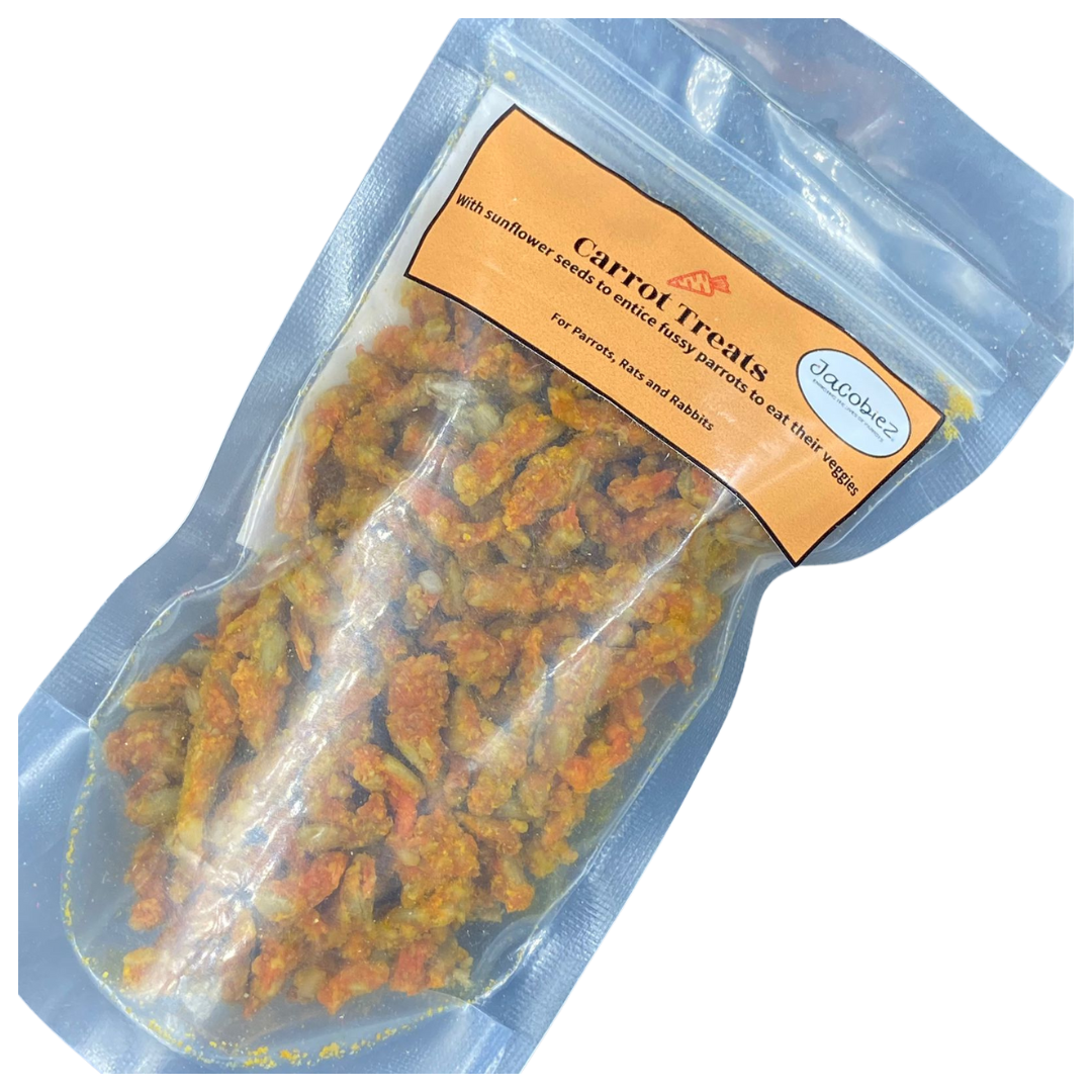 Dehydrated vegetable treats with sunflower seeds. This veggie treat was designed for picky eaters that aren't so keen on veggies. The sunflower seeds lures them to taste the veggies, and will make them less reluctant to try fresh veggies. They are also great as treats. Great for rodents too.