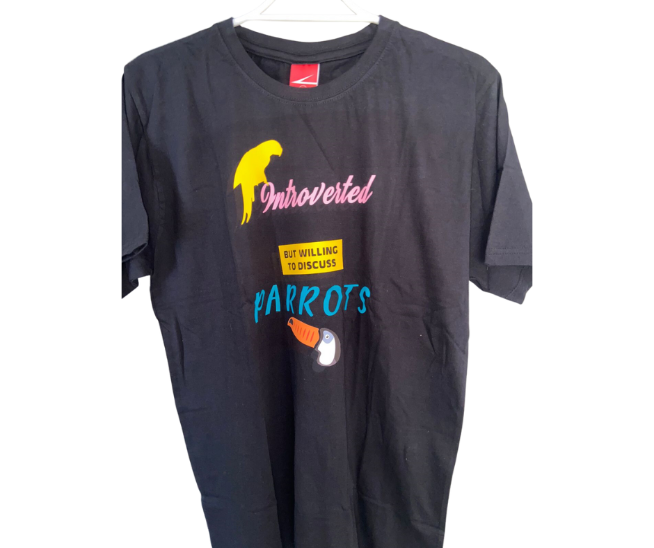 Proceeds go to Cheeky Beaks Parrot Rescue.