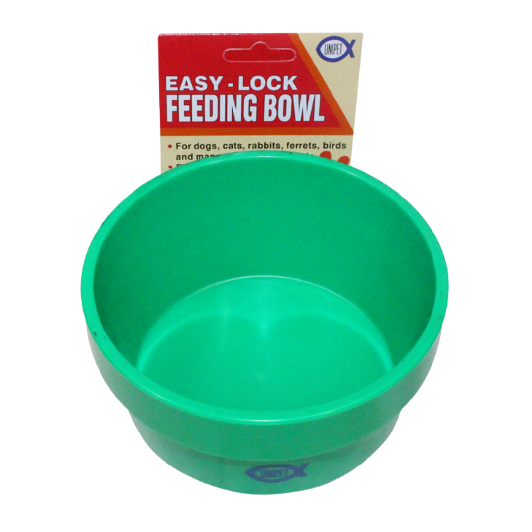 Easy lock food and water crock bowls fits on all wire cages, vertical or horizontal wire, and mounts on board. The removable bowl locks in place with a simple twist. Dishwasher safe. Made From heavy duty Plastic, so its durable.