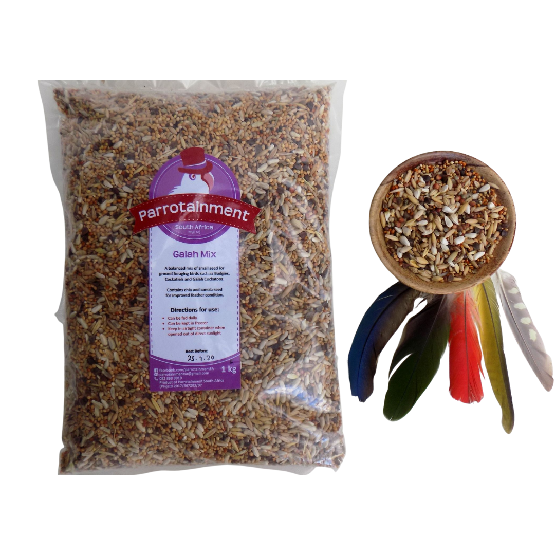 A coarse-textured, low-fat balanced mix of small seed for ground foraging birds such as Budgies, Cockatiels, Lovebirds, Quackers, Conures, Parrotlets, and Galah Cockatoos. It contains chia and canola seed for improved feather condition.