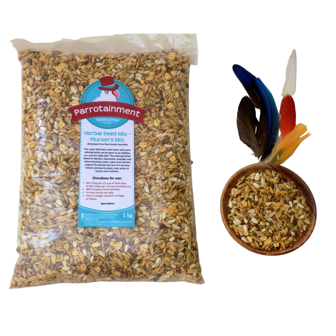 A superfood seed mix for parrots that are of a nervous nature, pluck, or overpreen.