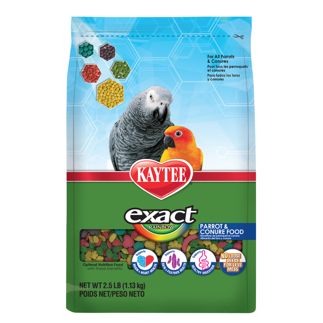 Kaytee Exact Rainbow Parrot and Conure food is a premium extruded food and has been the recognized nutritional leader by avian nutritionists, veterinarians and breeders since its introduction over 25 years ago. Each nugget contains "exact nutrition" ensuring your bird gets exactly the right nutrition to produce better feathering, brighter colors and maintain excellent health. exact Rainbow is 100% consumable with no seed hulls or shells for less mess.