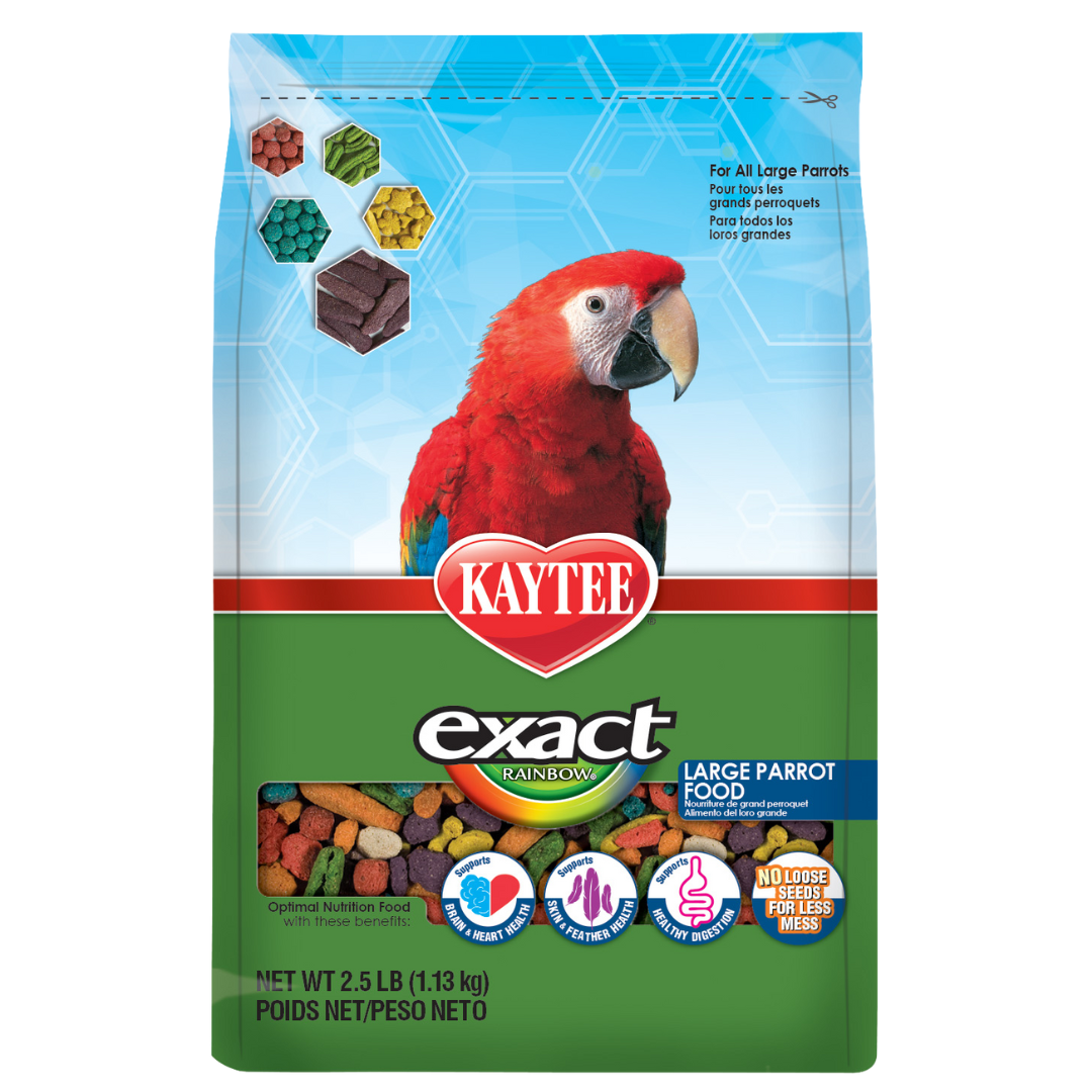 Kaytee Exact Rainbow food is a premium extruded food and has been the recognized nutritional leader by avian nutritionists, veterinarians and breeders since its introduction over 25 years ago. Each nugget contains "exact nutrition" ensuring your bird gets exactly the right nutrition to produce better feathering, brighter colors and maintain excellent health. exact Rainbow is 100% consumable with no seed hulls or shells for less mess.