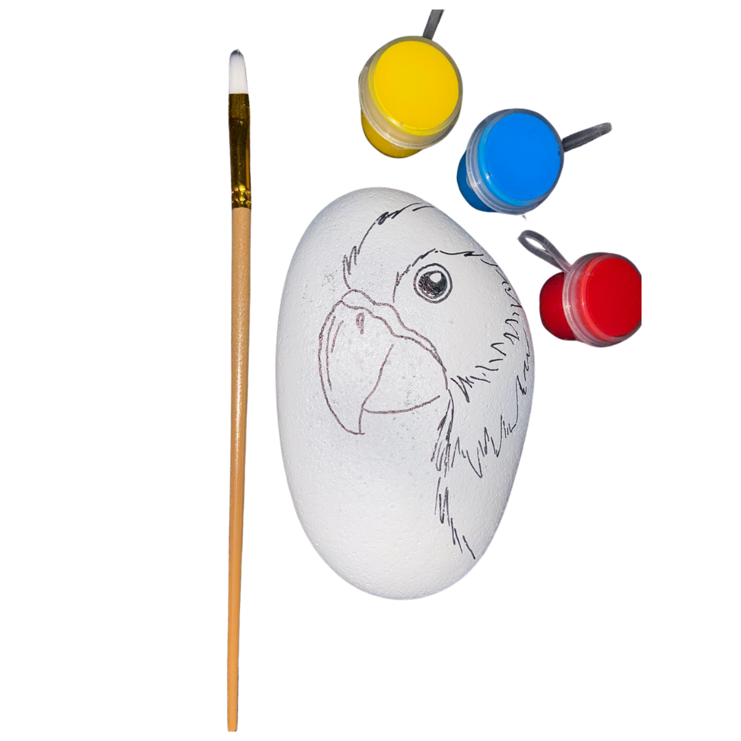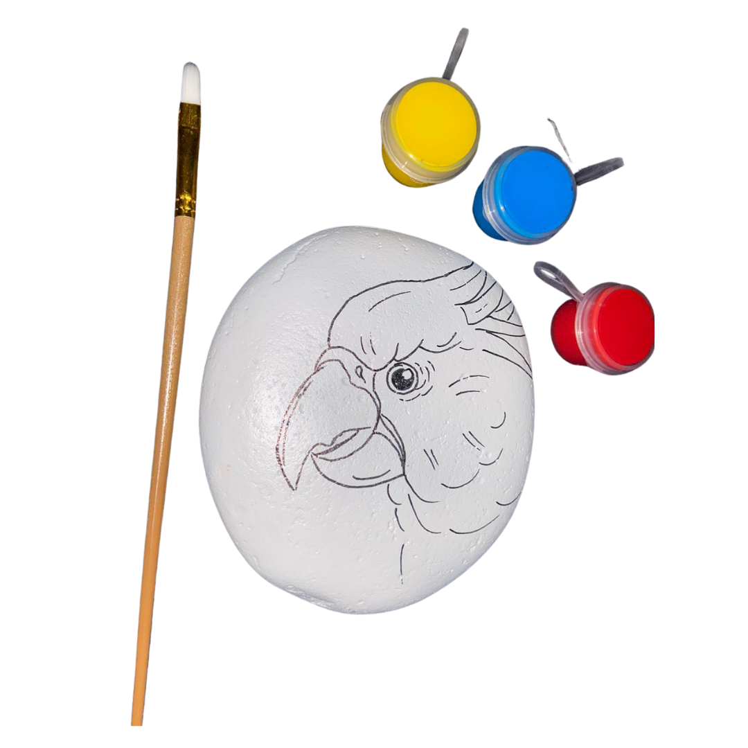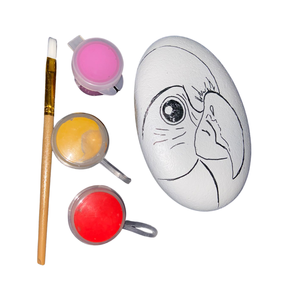 Palm sized parrot themed painting rock, with 3 colours & brush