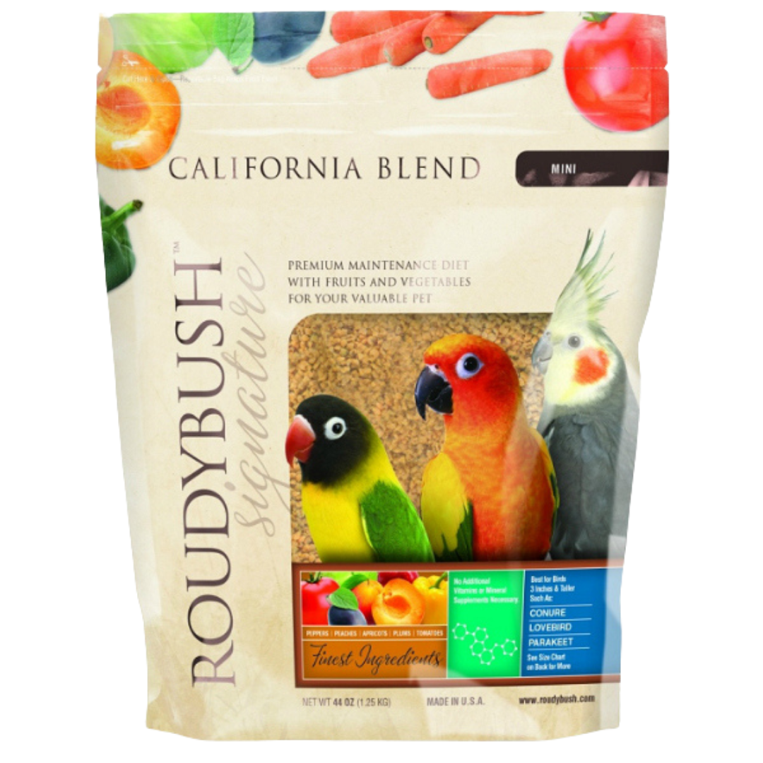 Delectable daily diet entices your pet bird with a blend of real fruits and vegetables. Appealing, no-waste blend contains real pieces of wholesome dried peaches, apricots, plums, bell peppers, carrots, tomatoes, and cabbage combined with Roudybush Daily Maintenance pellets. Suitable for Cockatiel, Lovebird, Budgerigar, Conure, Canary, Ringneck, Caique, Neophema, Quaker.