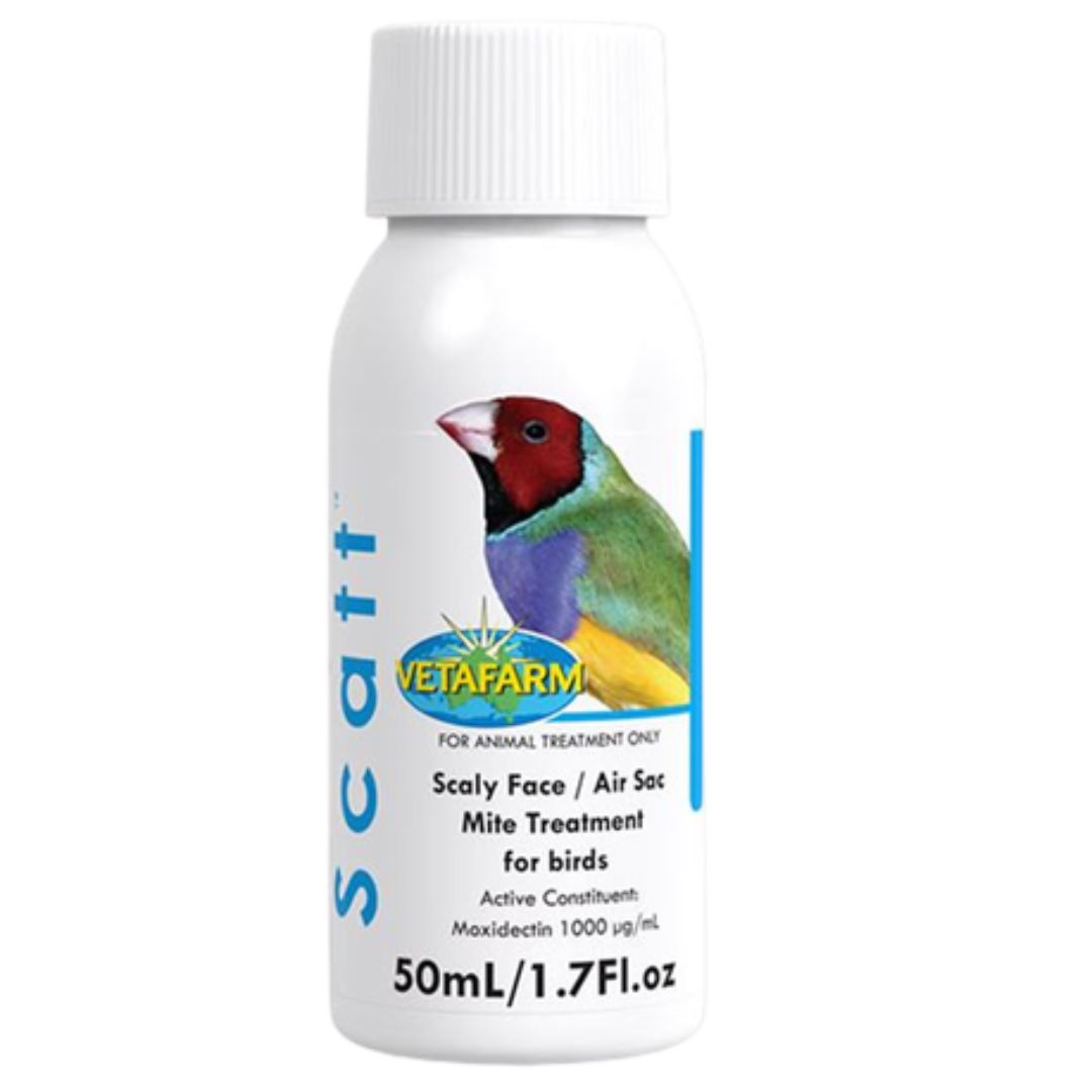 • Treatment for Scaly Face / Air Sac Mite in birds.