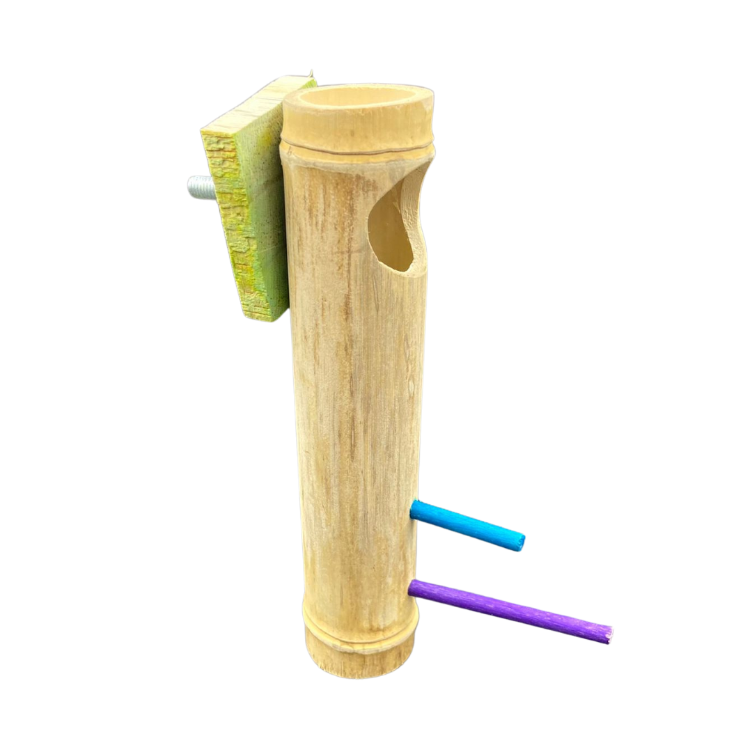 Place a treat inside the hole, hear it drop to the bottom of the bamboo log, then watch your parrot try and figure out how to twist the log around to release the treat. The log can spin around 360. All your pet has to do is figure out how to twist the log upside down to retrieve its treat.